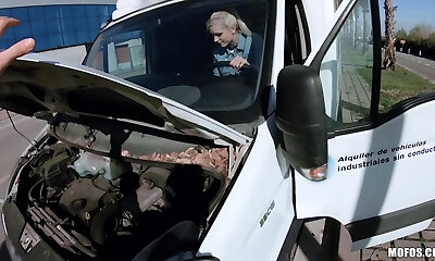 Blonde Bombshell Fucked Hard in Her Stranded Ride!
