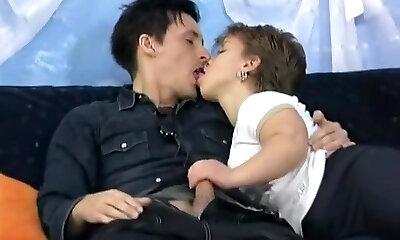 Pussy-licking Amateur Euros Sex on Couch with Tiny Dude Porn