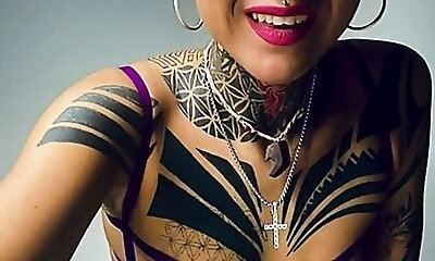 Tattooed Babe Swallows Every Drop