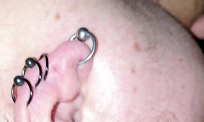 Hubby plays with wife’s pierced tits.