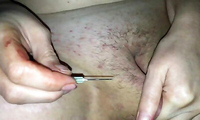 Blonde Slave's Fresh Pussy Piercing