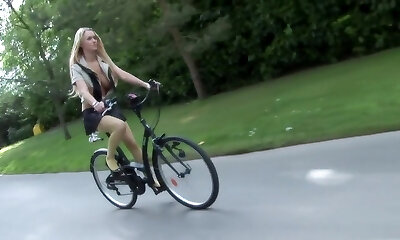 German Brunette Rides Hard Outdoors