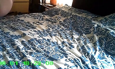 Busted by Hidden Cam: Hot Horny Couple Fucks Hardcore on Blue Comforter!