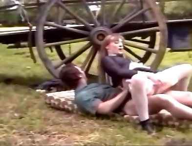 French maid in pantyhose boinks on a farm with ginormous popshot