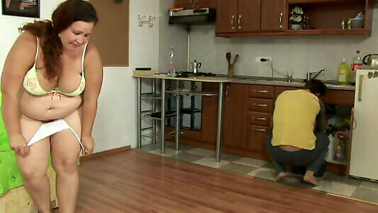 Very gigantic dark haired Bbw female pounding in the kitchen