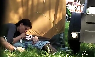 Sexy Granny Gives Blowjob to Hairy Chested Man: A Hot Voyeuristic Scene!